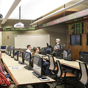 The Soin Trading Center hosts FactSet, professional financial data software that allows students to learn and practice professional trading, portfolio construction, and risk management. Through experiential learning, Finance students manage a real-money investment portfolio that is now over $2 million in value.